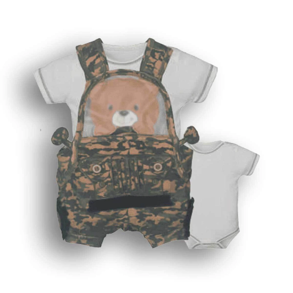 Este banho de sol verde militar é a escolha perfeita para os dias quentes, acompanha body marfim e um boné, unindo conforto e estilo para os pequenos. Com mangas curtas e modelagem inspirada em suspensório, a peça oferece um visual moderno e charmoso. O grande destaque é a estampa frontal de ursinho com relevo, que adiciona um toque lúdico e especial ao look. Confeccionado em tecido leve e macio, proporciona total liberdade de movimento, ideal para momentos de lazer.