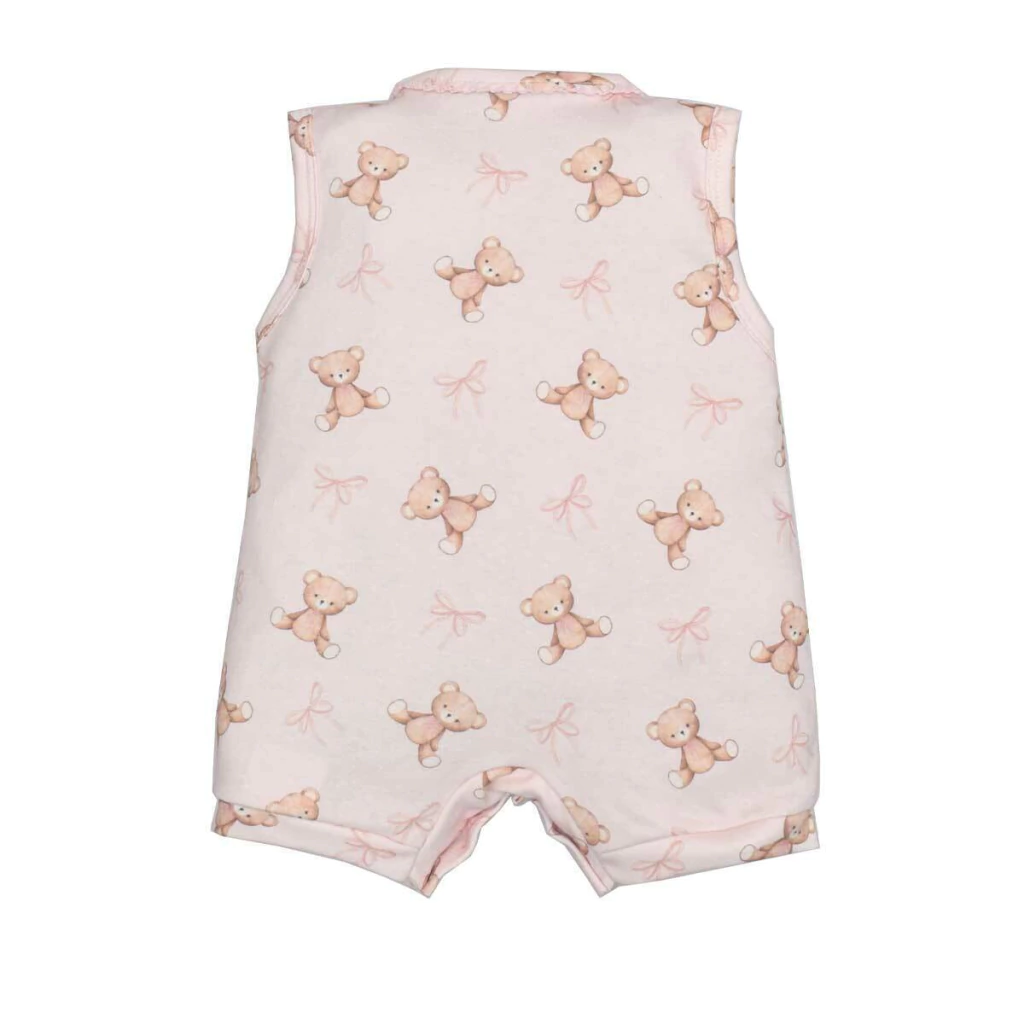 O Banho de Sol Suedine Ursinha Laços é a escolha perfeita para dias de calor com muito charme e conforto. Confeccionado em suedine leve, possui estampa delicada de laços e ursinhas, com aplique frontal em alto relevo super fofo e lacinho rosa aplicado. A modelagem cavada é fresquinha e prática, com abertura entrepernas para facilitar as trocas da bebê.