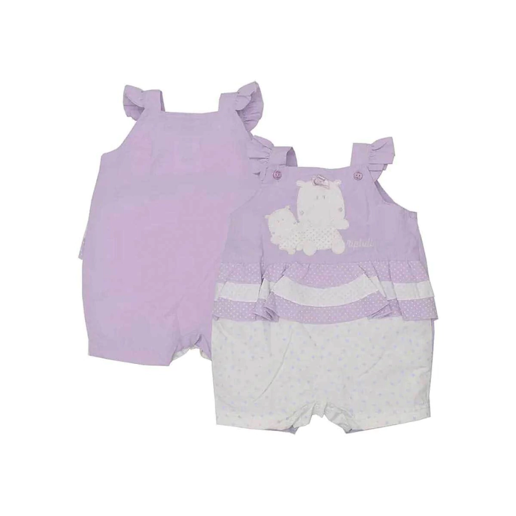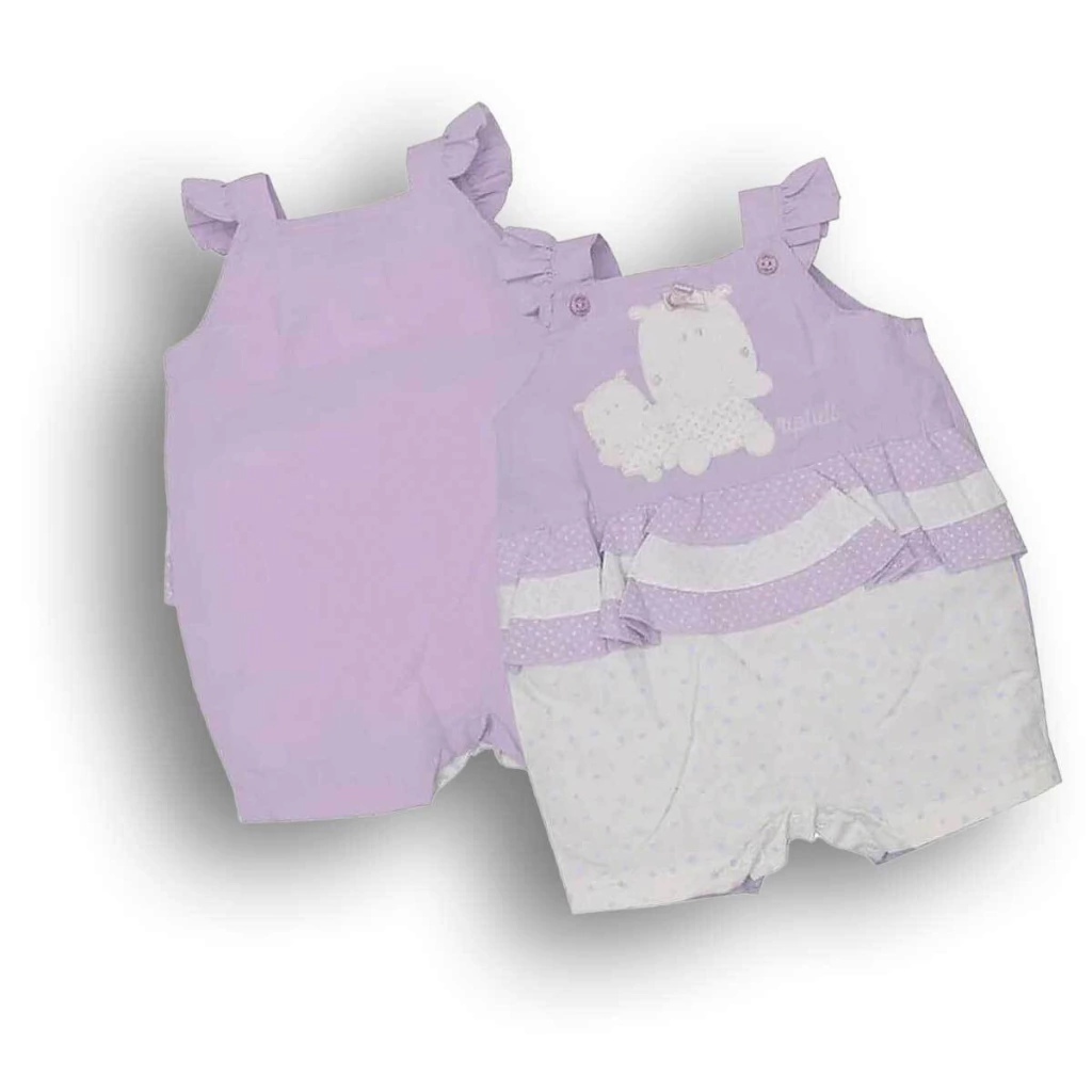 Banho de sol bebê menina em tactel, com frente estampada de hipopótamo e babados, e costas lisas. Super confortável, leve e fresquinho, ideal para os dias quentes.