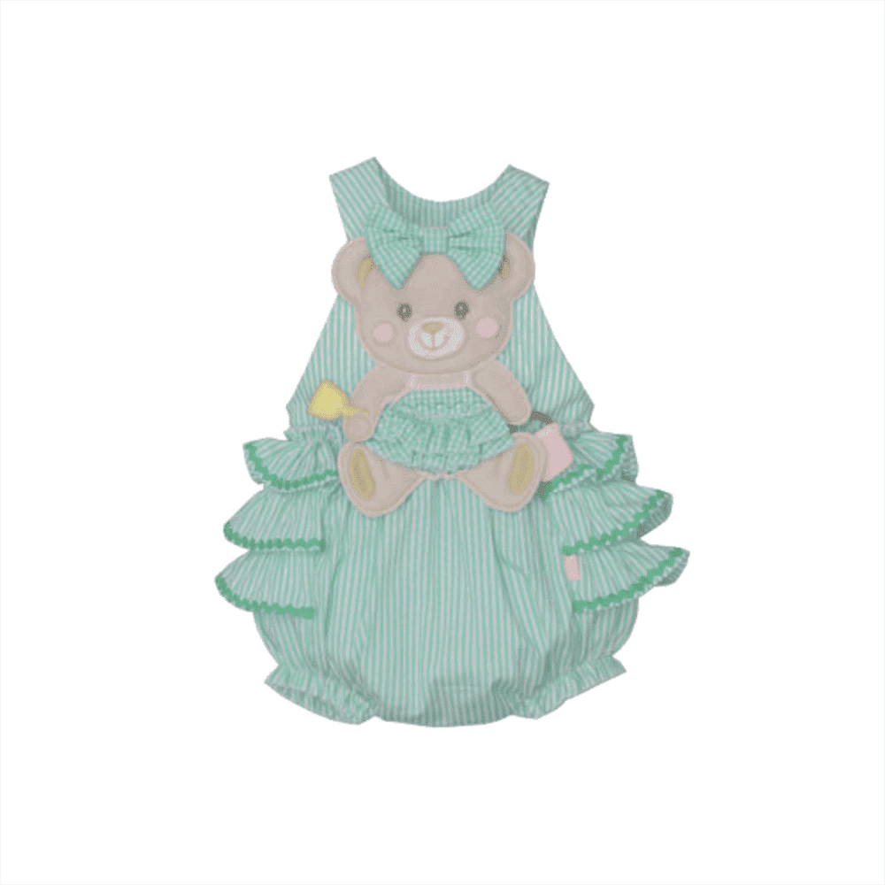 Este encantador banho de sol para bebê menina é a escolha perfeita para os dias quentes! Na cor verde com listras brancas, traz um visual delicado e charmoso. A estampa de uma adorável ursinha marrom com um laço verde adiciona um toque especial de fofura, enquanto os babados garantem ainda mais graciosidade. Feito em algodão leve, proporciona conforto e frescor para a pele sensível da sua pequena.