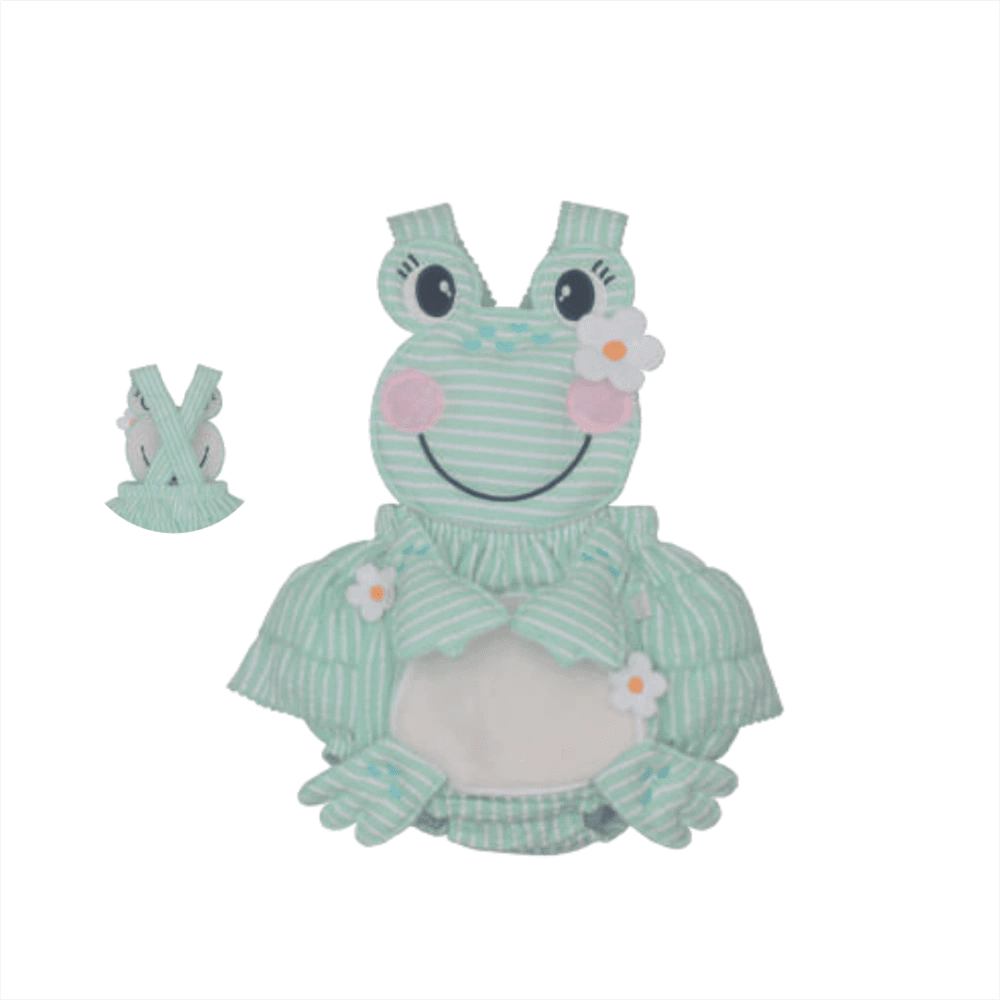 Este banho de sol é a escolha perfeita para os dias quentes, trazendo conforto e um visual fofo para sua pequena. Com alças transversais que garantem um ajuste seguro, o modelo na cor verde com listras brancas possui uma adorável estampa frontal de sapinha, adicionando um toque lúdico e divertido.