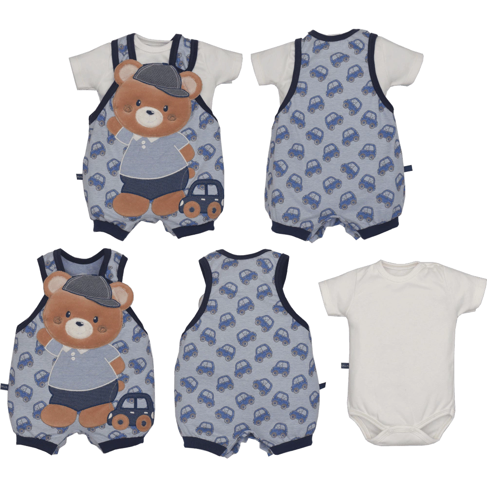 O Conjunto Bebê Menino Banho De Sol Com Body D'Júlio Urso Azul é a combinação perfeita de conforto, praticidade e fofura para acompanhar o seu pequeno em todos os momentos!