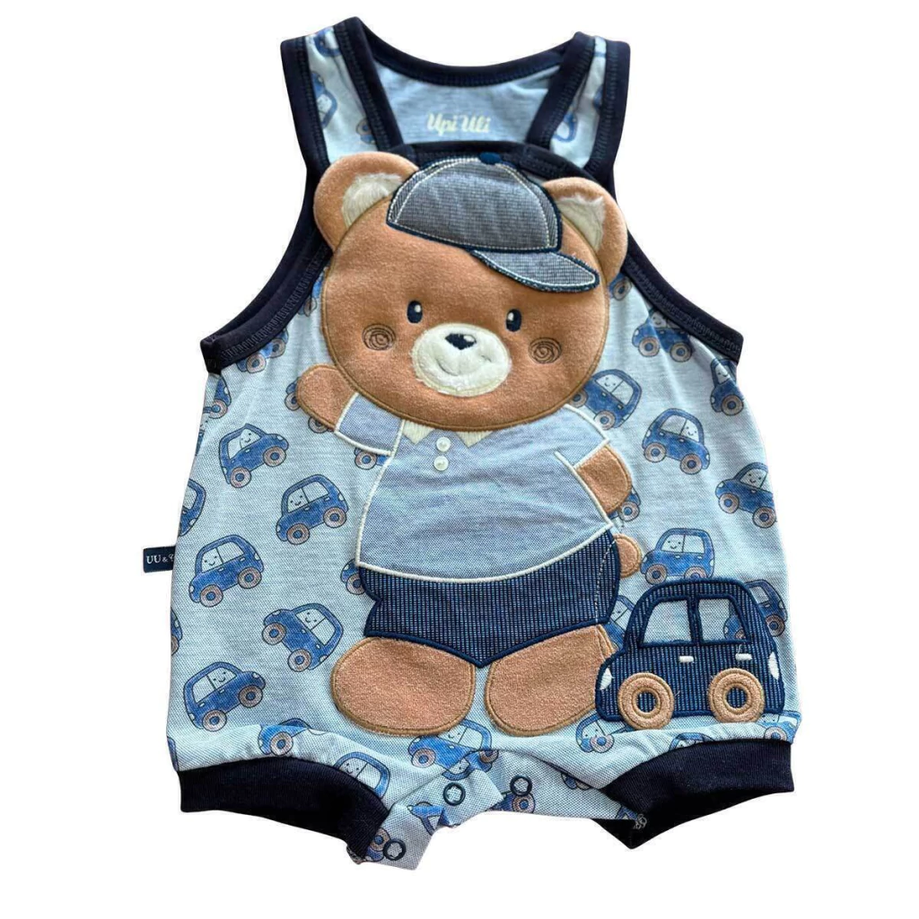 O Banho de Sol Azul Piquet D' Julio é perfeito para os dias mais quentes, garantindo conforto e muito charme para o bebê. Com estampa divertida de carrinhos e aplicação em relevo de ursinho com boné e bolso, esse look é ideal para passeios e momentos especiais.