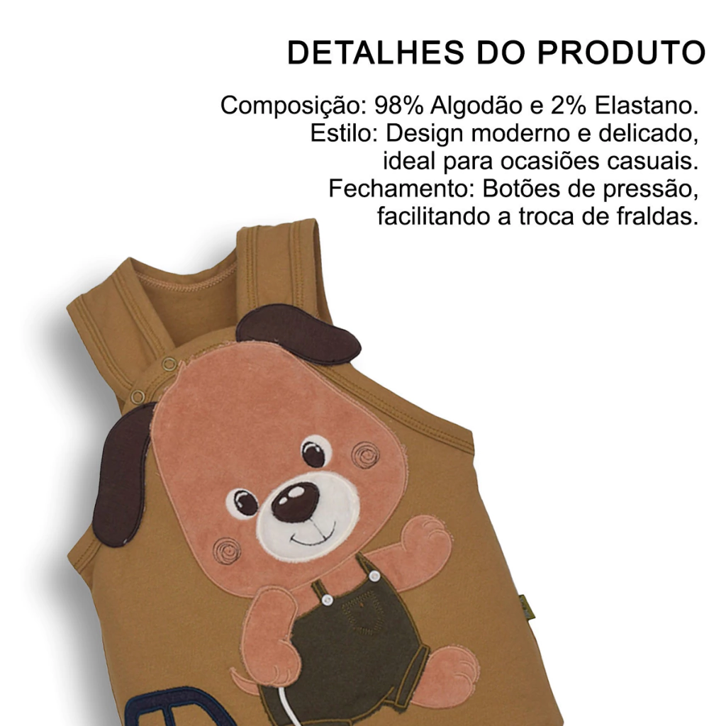 Body banho de sol para bebê menino, confeccionado em pique de algodão com elastano, trazendo conforto e leveza para os dias quentes. Com estampa frontal em relevo de urso e cor bege, esse modelo combina estilo e suavidade para o seu pequeno.