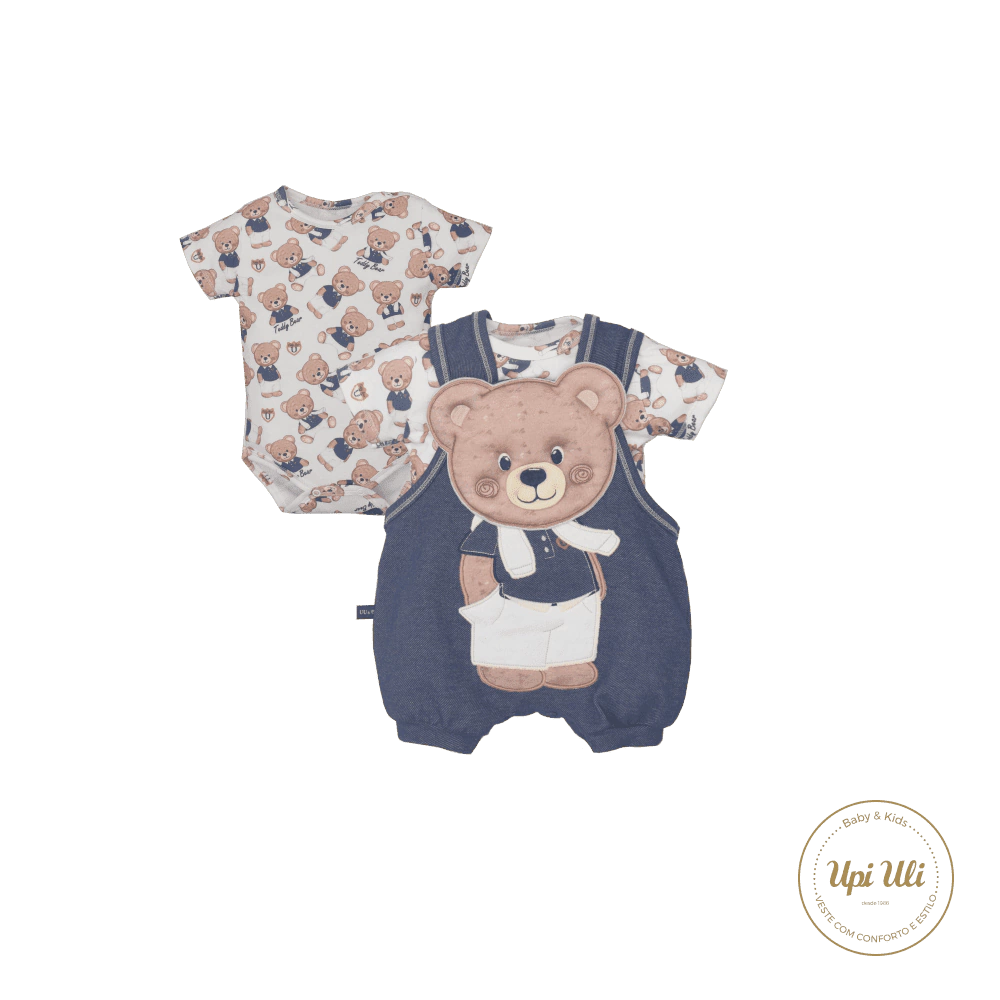 Conjunto encantador composto por um body estampado e um banho de sol azul marinho, perfeito para proporcionar conforto e estilo aos pequenos. O body, confeccionado em tecido macio, apresenta uma divertida estampa digital de ursinhos, enquanto o banho de sol traz um bordado frontal 3D superfofo de ursinho, tornando a peça ainda mais especial. Para maior praticidade, o banho de sol conta com abertura no fundo e nas alças, ambas com fechamento por botões de pressão, facilitando na hora de vestir e trocar.