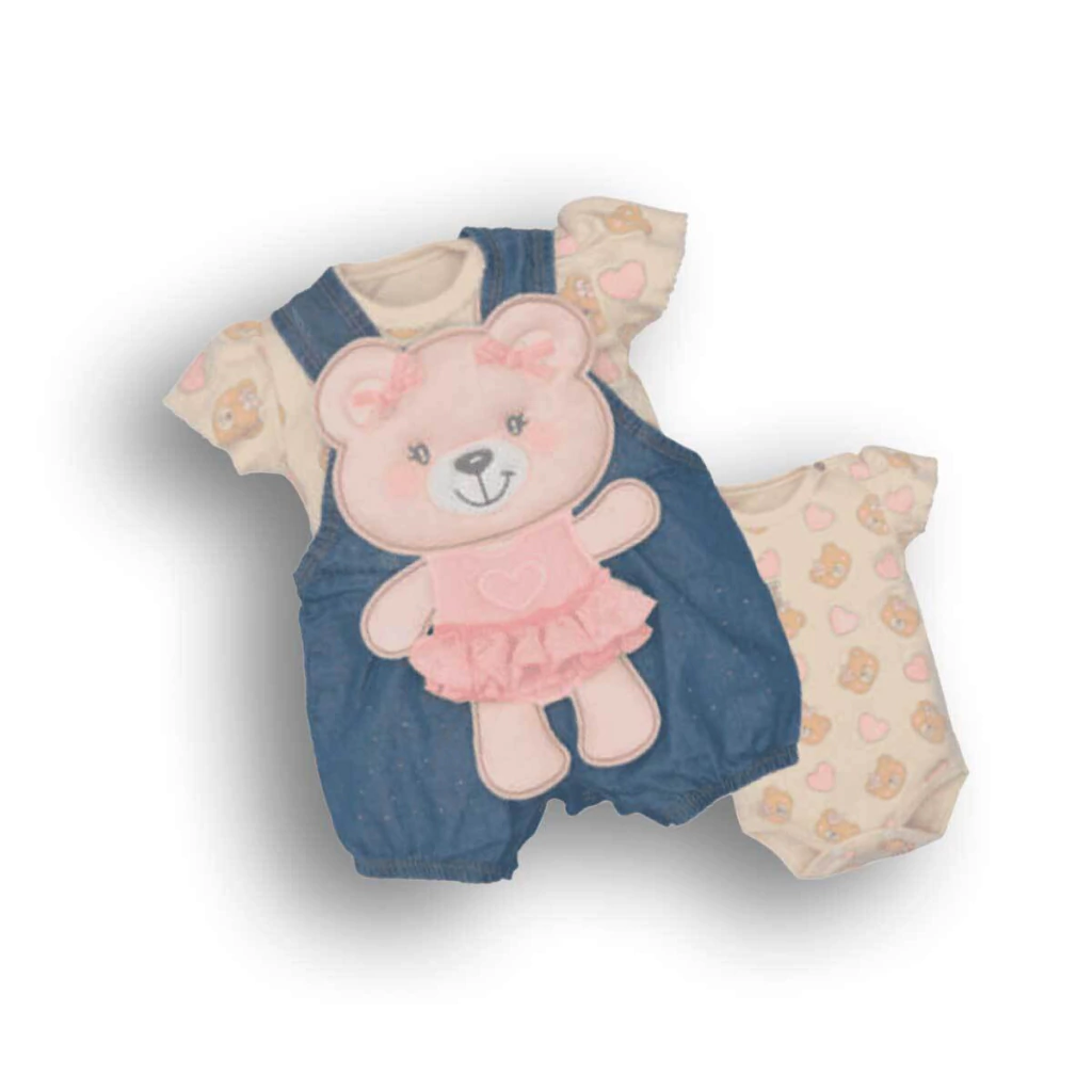 Este encantador conjunto é perfeito para manter seu bebê confortável e estiloso durante os dias quentes. O banho de sol em jeans é macio e confortável, apresentando um adorável bordado de ursinha na parte frontal. Com abertura no fundo e nas alças, e fechamento em botão de pressão, ele é prático para vestir. O body em suedine possui uma estampa digital de ursinhas em flocagem, garantindo um visual adorável.