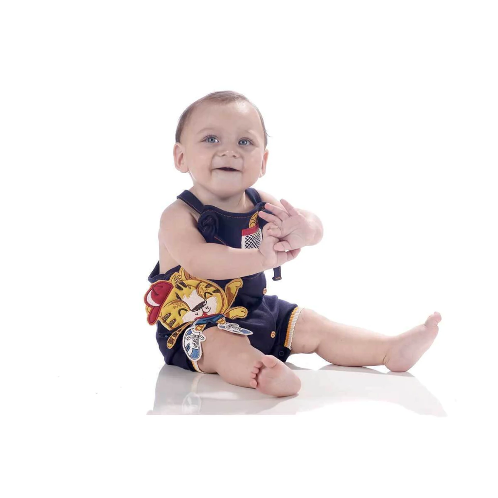 Banho De Sol Bebê Menino Com Body Azul Marinho Jonas Urso