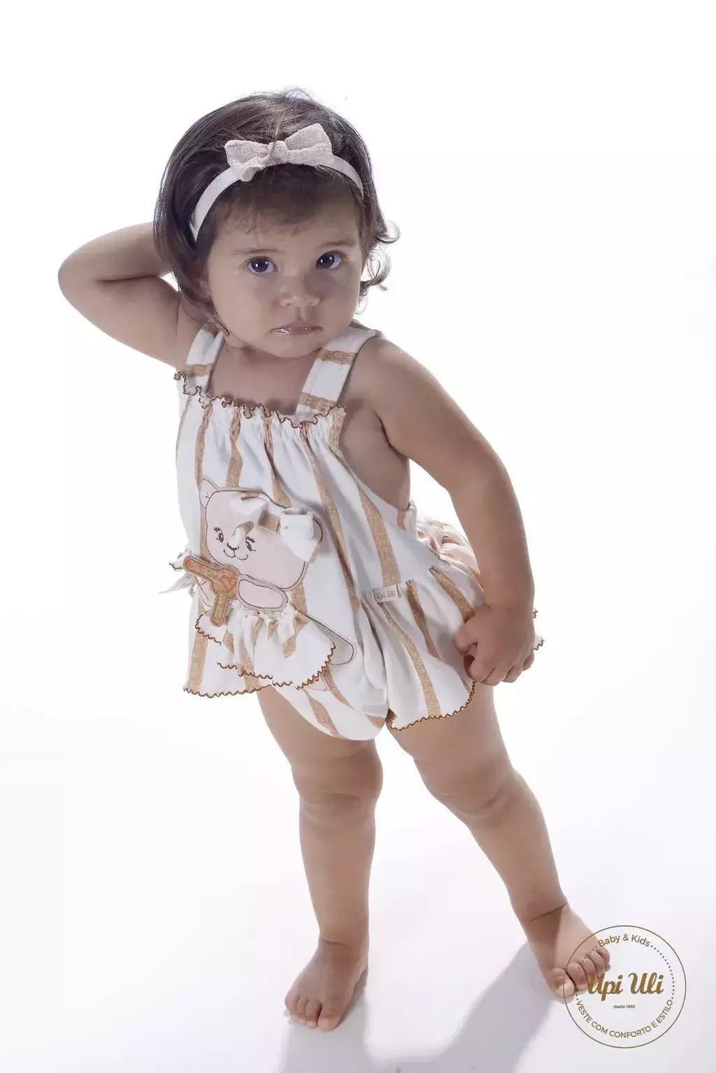 A ursinha Clarice chegou trazendo por aqui muitas fofuras...é de enlouquecer num modelinho todo em suedine com listras na estamparia digital (toque zero) bem macio e confortável...em meio a babadinhos, lastek no peitinho e elástiquinho nas perninhas, o charminho ainda está no bordado da mãezinha secando o cabelinho da pequena...uma riqueza em detalhes!!!