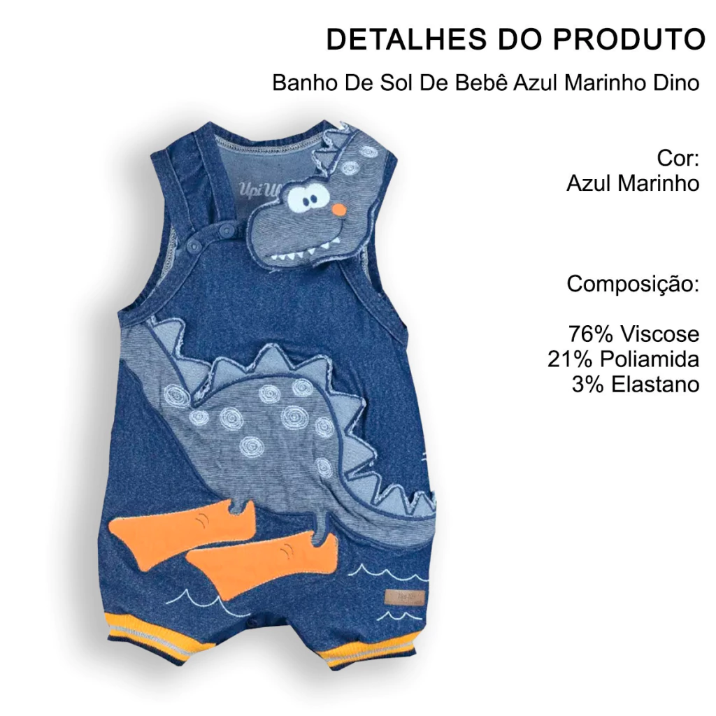 Prepare seu pequeno para curtir os dias de sol com muito charme e descontração. Este banho de sol azul marinho da Upi Uli vem com um adorável dinossauro aplicado em alto-relevo, tornando o visual lúdico e encantador. Com tecido leve e toque suave, é ideal para proporcionar conforto e frescor durante todo o dia.