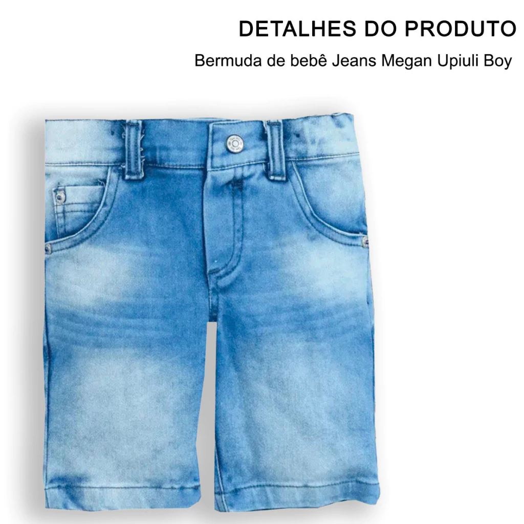A Bermuda Jeans Azul Infantil Menino Megan Boy Upi Uli é uma peça cheia de charme, perfeita para acompanhar os passeios e descobertas do seu pequeno. Com um jeitinho leve e delicado, ela une conforto e estilo em um só look, deixando os dias ainda mais gostosos de viver.
