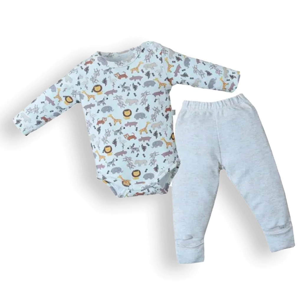 Escolha este conjunto safari cheio de conforto e fofura, ideal para acompanhar o bebê em suas primeiras descobertas com estilo e liberdade.