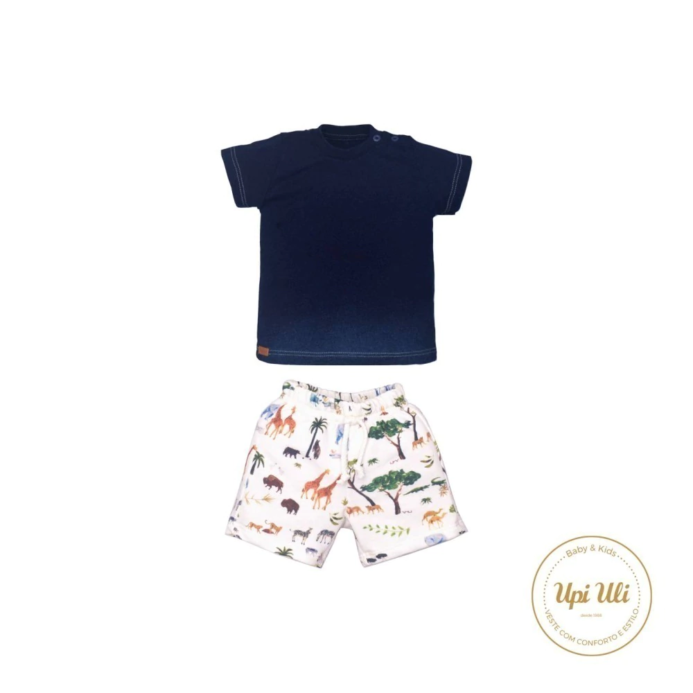 O Conjunto Camiseta e Short Safari é ideal para deixar os pequenos estilosos e confortáveis nos dias mais quentes. Feito em suedine macio e respirável, proporciona um toque suave e aconchegante na pele do bebê. A camiseta azul-marinho combina perfeitamente com o short marfim, que traz uma estampa encantadora de safari, cheia de animaizinhos que despertam a imaginação.