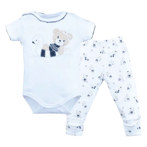 Delicado e confortável, este conjunto branco é ideal para os momentos mais especiais do seu bebê. O body traz uma estampa frontal com ursinho e detalhes bordados, adicionando um toque de doçura e charme à peça. O culote, também branco e feito com algodão macio, garante liberdade de movimento e aconchego durante todo o dia. Um conjunto leve, versátil e perfeito para o dia a dia ou ocasiões especiais.