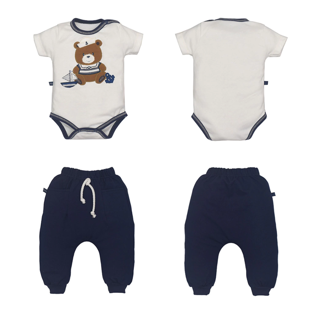 O Conjunto Body com Culote Suedine Talles é a escolha perfeita para os pequenos marinheiros. Com um design charmoso e sofisticado, esse conjunto combina conforto e praticidade, garantindo que seu bebê fique sempre estiloso e protegido. Feito em tecidos premium, o body conta com um bordado exclusivo de ursinho marinheiro, enquanto o culote azul-marinho traz um toque moderno e aconchegante para os momentos de descanso e brincadeira.