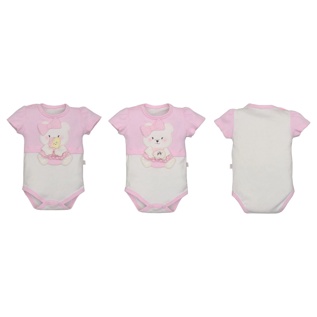 Body canelado rosa com ursinha bordada