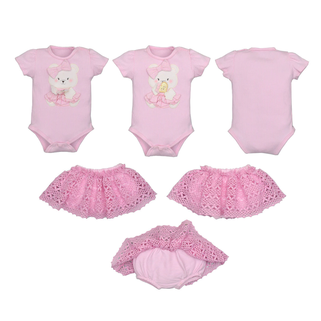 Encante o guarda-roupa da sua pequena princesa com o Conjunto Laura! Composto por um body rosa canelado com ursinha estampada e um tapa fralda que simula uma saia rodadinha tipo tutu em crochê, este conjunto é perfeito para ocasiões especiais ou para o dia a dia, trazendo um toque de delicadeza e fofura.