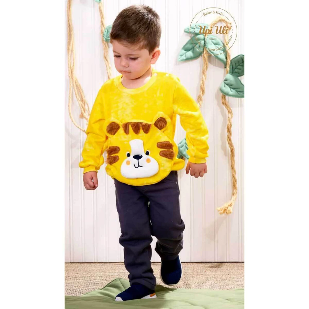 Blusa na cor amarelo, com bordado de tigrinho em relevo super chamegooo...