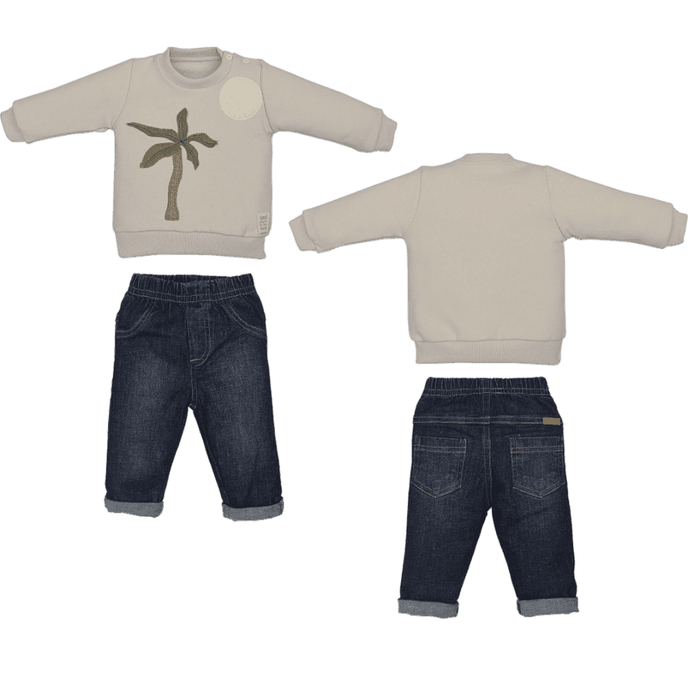 Uma opção moderna e confortável para o dia a dia das crianças! A blusa é na cor marfim e a calça jeans, unindo estilo e praticidade, garantindo liberdade de movimento sem abrir mão do conforto.