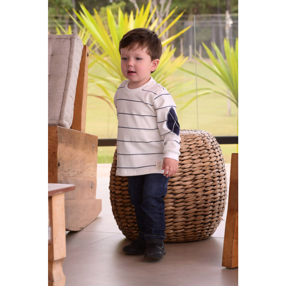Este conjunto é a combinação perfeita de estilo e conforto para os pequenos, com uma blusa charmosa e calça jeans para diversas ocasiões.