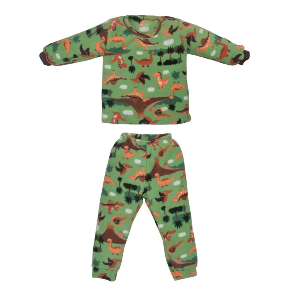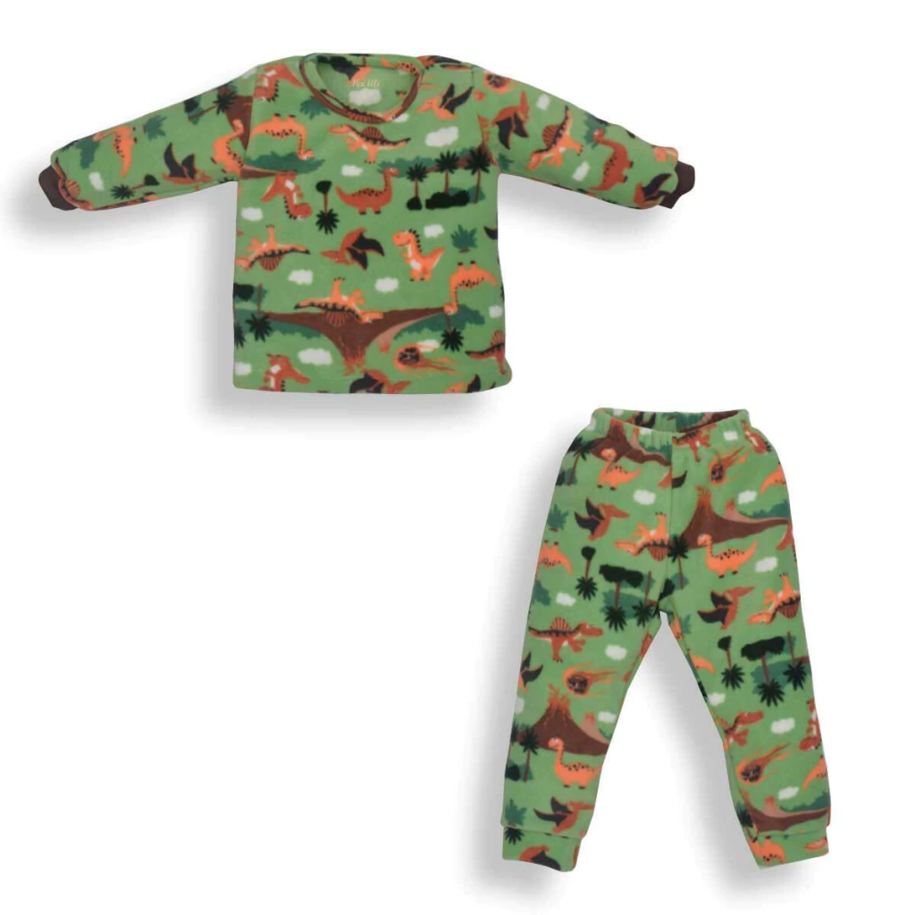 Conjunto Infantil para o Inverno, confeccionado em algodão, na cor verde seco com estampa de dinossauros. Confortável e cheio de estilo, perfeito para manter seu filho aquecido e animado nos dias mais frios.