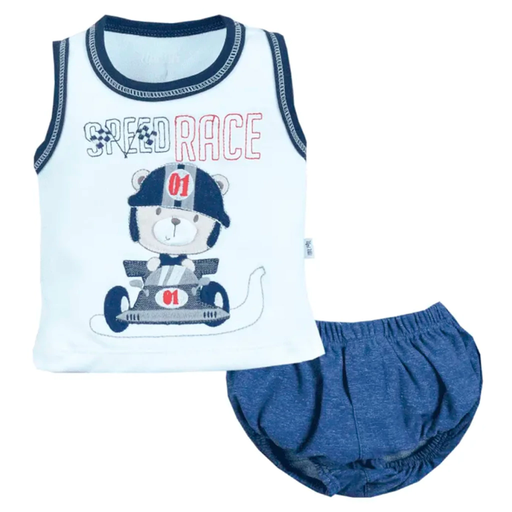 O Conjunto Bebê Menino Regata Suedine Dupla Face Speed Race com Tapa Fralda Upi Uli é pura fofura e praticidade para o dia a dia do seu bebê. Com estampa divertida e tecido macio, ele é ideal para deixar os pequenos confortáveis e estilosos em qualquer momento.