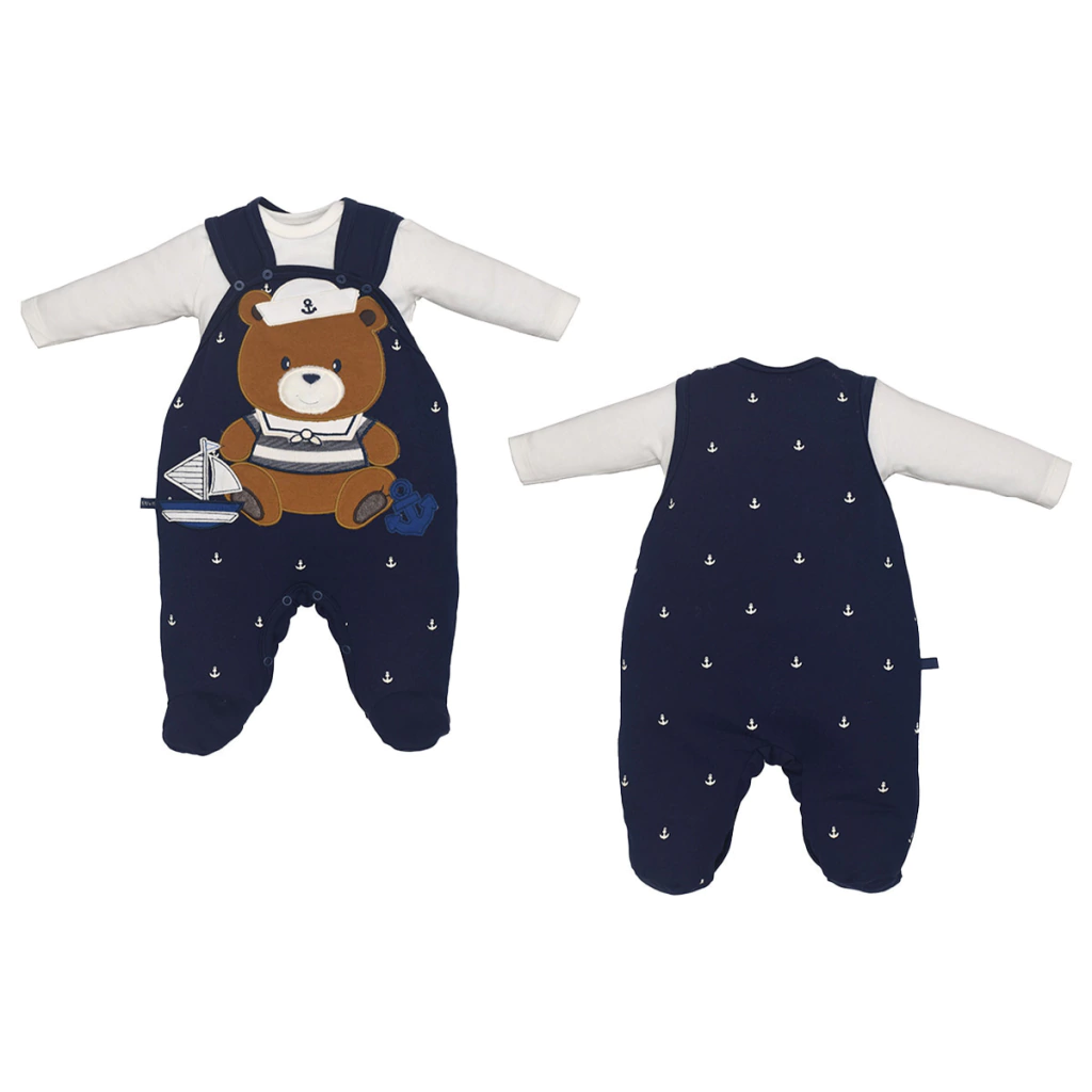 Jardineira Com Body Bebê Menino Pique Premium Suedine Azul Marinho