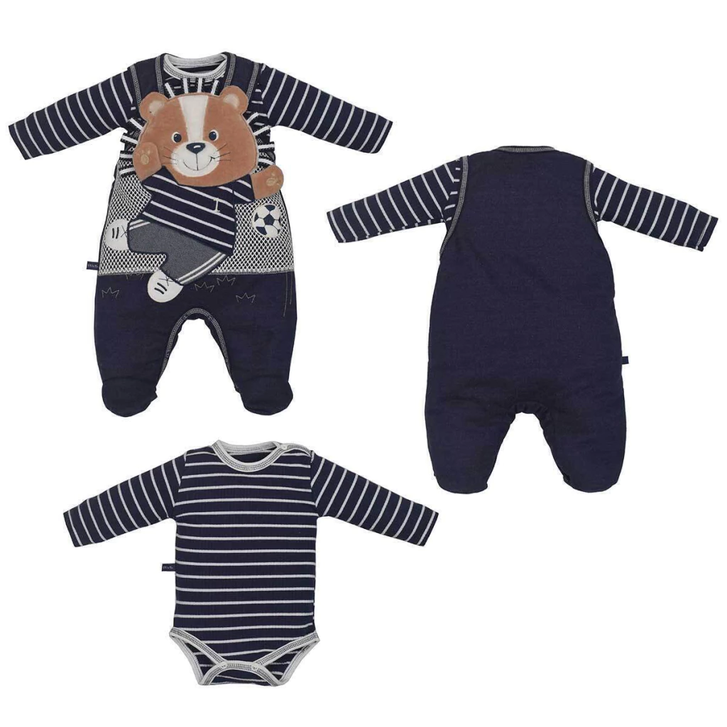 O Jardineira com Body Bebê Menino Urso Azul Marinho é a opção ideal para vestir seu bebê com praticidade e estilo, acompanhando-o em todos os momentos do dia!
