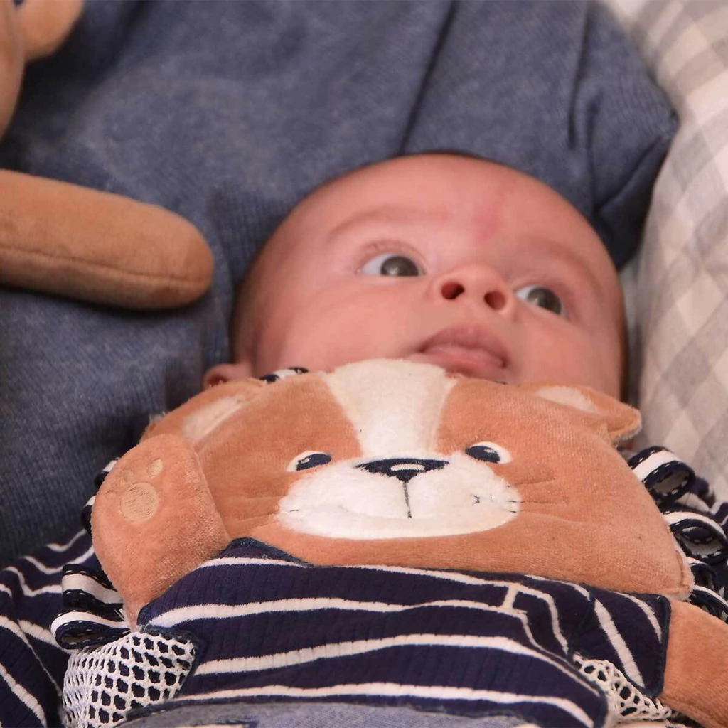 Feito em canelado listrado, macio e confortável para a pele sensível do bebê.