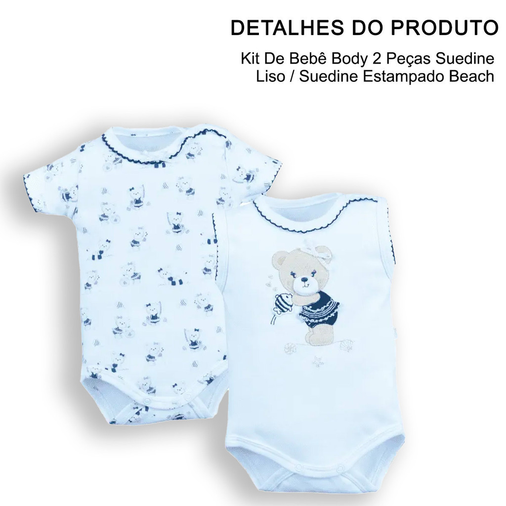 Escolha o Kit 2 Bodys Azul Claro Ursinha e Ursinhos para vestir seu bebê com conforto e um toque extra de fofura.