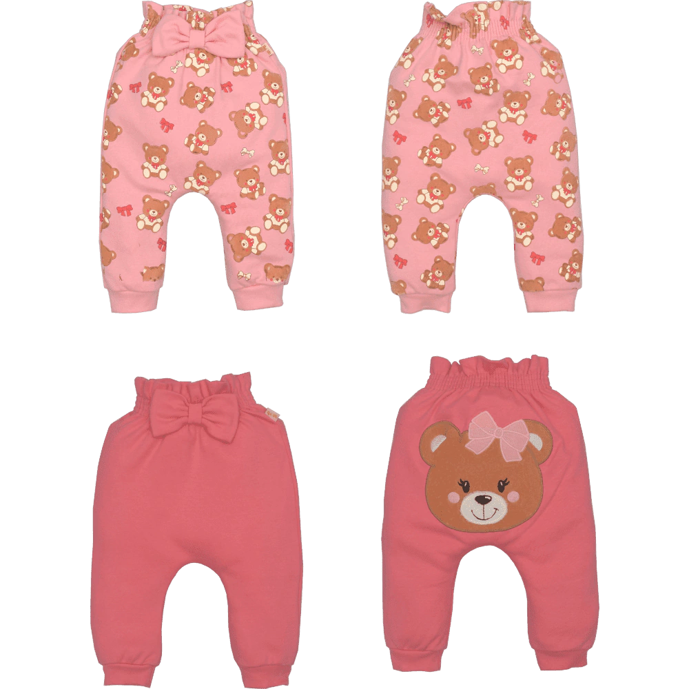O Kit Culote Bebê Menina 2 Peças Rosa Ursinho Lacinho é perfeito para oferecer conforto e delicadeza ao dia a dia do bebê, com um design encantador e toque macio.