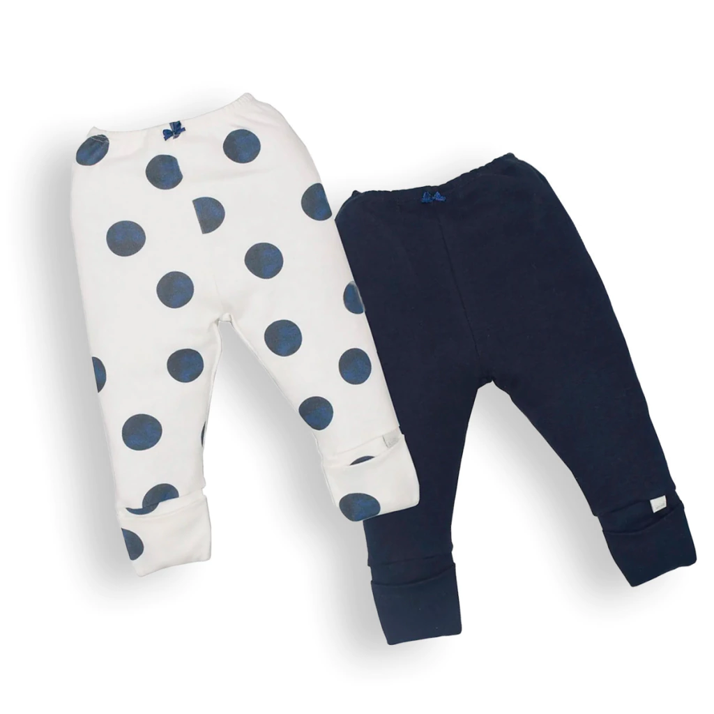 Diversão e conforto se encontram neste lindo kit com duas calças infantis inspirado na Margarida! Perfeito para o dia a dia das pequenas, ele traz uma opção branca com estampa de poás azuis e outra azul-marinho lisa com um charme especial: aplicação bordada da Margarida na parte de trás, com laço em tule, que dá um toque lúdico e encantador. Ambas as calças possuem punhos dobráveis e cintura com elástico, garantindo praticidade e liberdade nos movimentos.