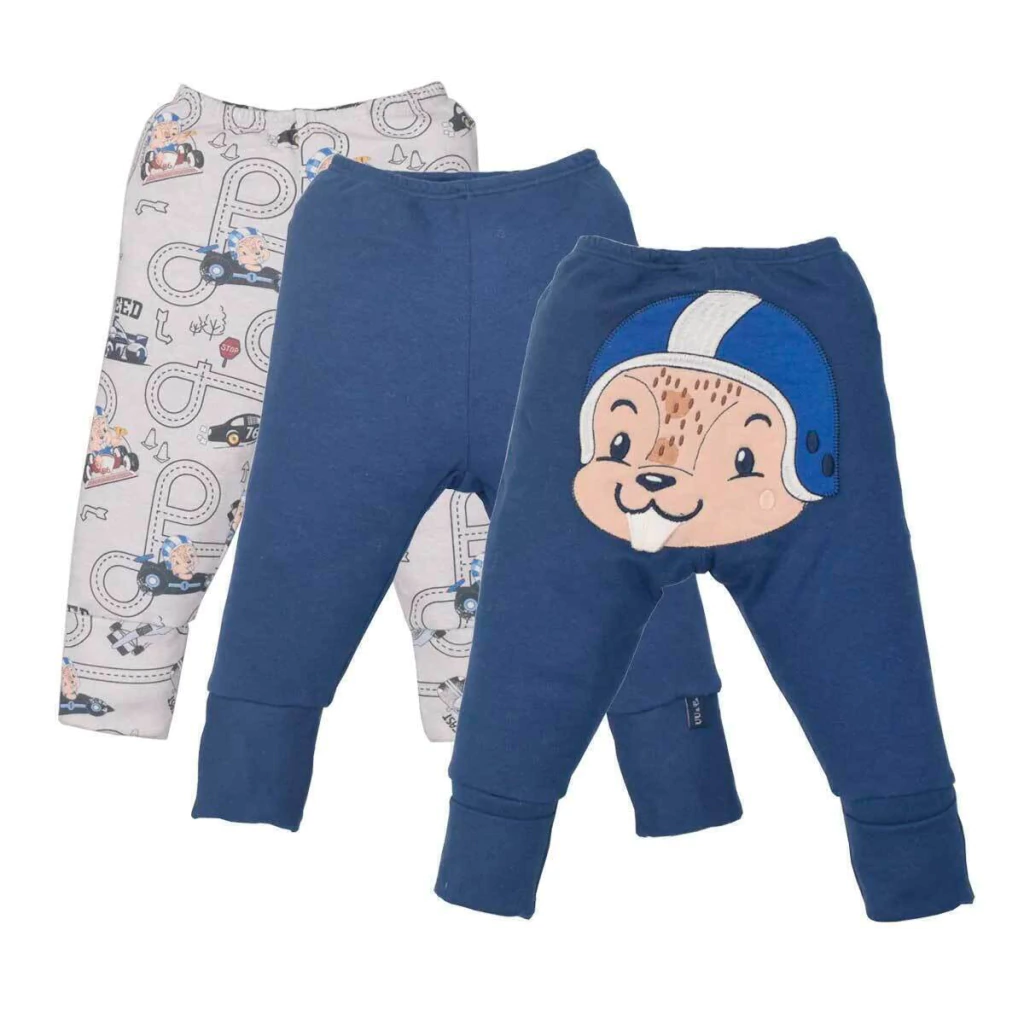 Esse kit de dois culotes é perfeito para garantir conforto e muito estilo nos dias a dia do seu bebê. Confeccionados em suedine 100% algodão, os modelos oferecem toque suave e aconchegante. Um deles possui estampa digital (toque zero) com tema de carrinhos e pistas, enquanto o outro é azul forte com bordado fofo no bumbum de um bichinho com capacete — destaque para os dentinhos em alto-relevo que são pura fofura. Ambos contam com elástico leve na cintura e pé reversível.