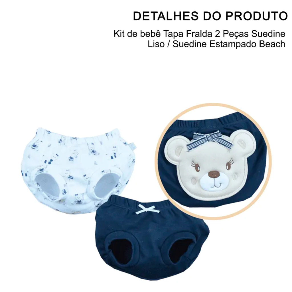 O Kit Tapa Fralda Upi Uli é composto por duas peças em suedine, uma lisa e uma estampada com tema "Beach", perfeitas para garantir liberdade de movimento e um visual encantador. Ideal para usar sozinho nos dias quentes ou como complemento de outros looks.