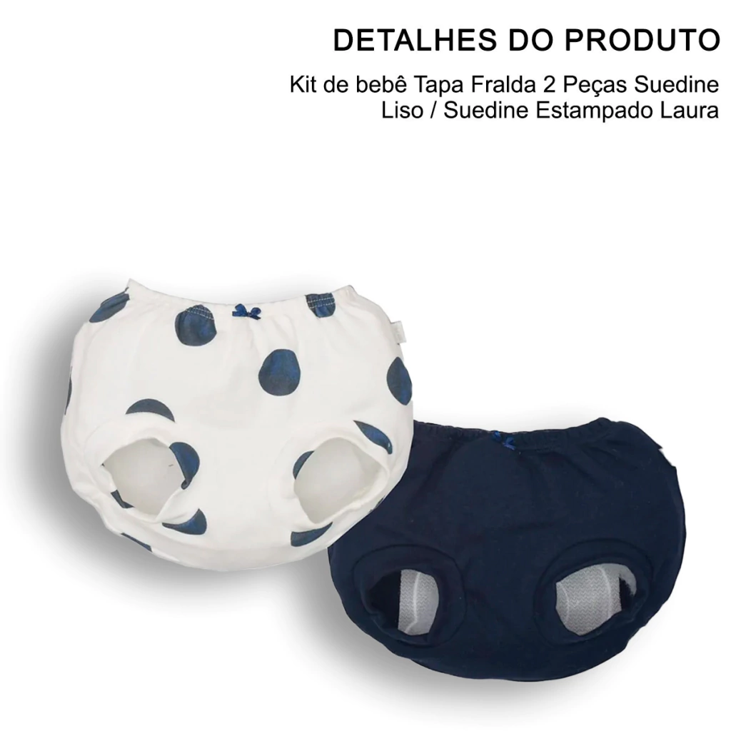 Prático e irresistível, o Kit de Bebê Tapa Fralda 2 Peças Suedine Laura é perfeito para deixar os momentos do seu bebê ainda mais confortáveis e cheios de charme! Composto por uma peça lisa azul-marinho e outra com estampa divertida de poás, esse kit é feito em suedine macio, ideal para proteger a fraldinha com muito estilo. O elástico na cintura garante um ajuste delicado e seguro, sem apertar, além de ser uma peça coringa que combina com diversos looks.