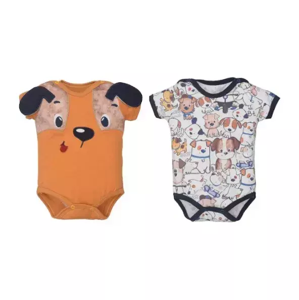 1 body liso em meia malha, com bordado de uso 3d frontal de cachorro.