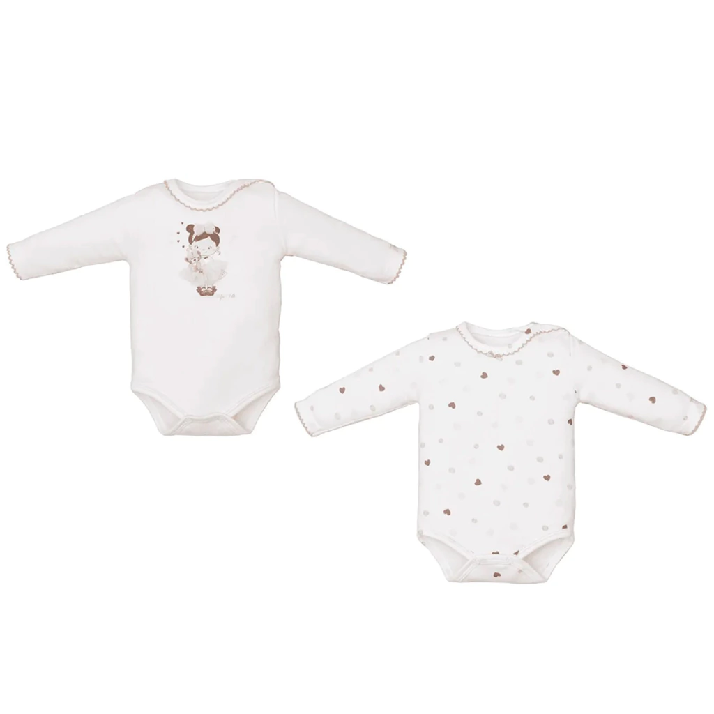 Encanto em dose dupla para as pequenas! Esse kit conta com dois bodys super fofos na cor marfim: um com estampa delicada de uma menininha encantadora e outro com estampa de corações, perfeito para transmitir todo o amor que envolve a fase mais doce da vida. Feitos em tecido macio e confortável, garantem liberdade de movimento e muito bem-estar para o dia a dia do bebê.