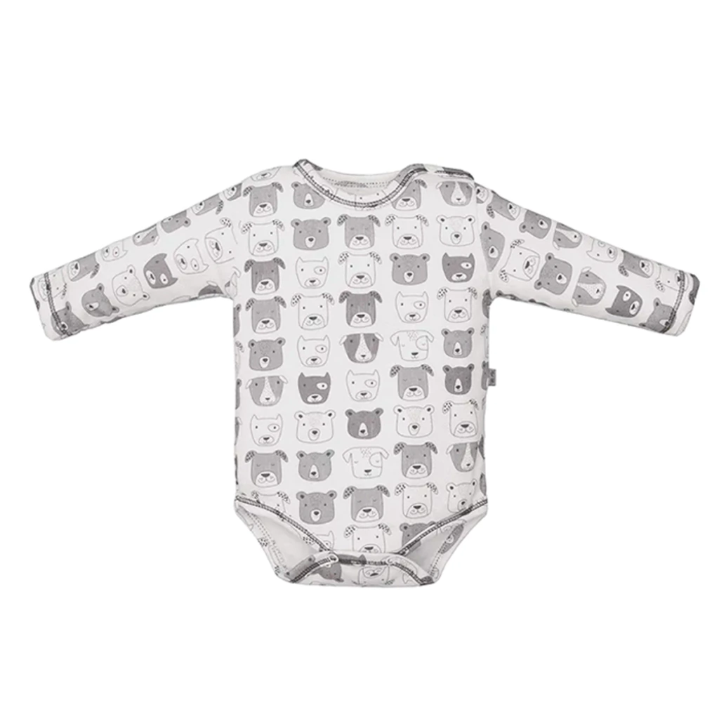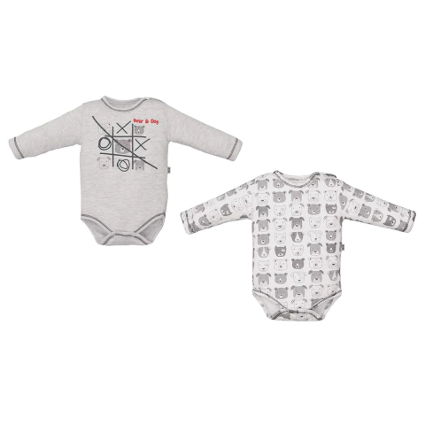 Conforto e fofura para todos os momentos! Este kit de bodys manga longa é perfeito para manter o bebê aquecido e estiloso. Confeccionados em suedine macio, ambos na cor marfim, um dos bodys apresenta uma estampa frontal delicada de cachorrinho e ursinho, enquanto o outro traz a mesma duplinha em uma estampa corrida encantadora. Ideais para o dia a dia, com toque suave e praticidade no vestir.