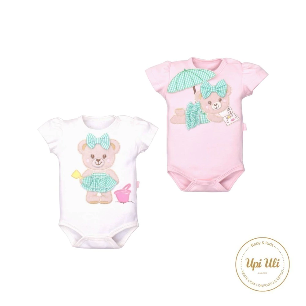 Este conjunto para bebê menina é a opção perfeita para quem busca suavidade, conforto e praticidade. Composto por dois bodies lisos em suedine, 100% algodão, ele oferece um tecido super macio e aconchegante para a pele delicada do bebê. Cada body conta com um bordado frontal de ursinha, que adiciona um toque de charme. Ambos possuem abertura no ombro e fundo, com fechamento em botão de pressão, facilitando na hora de vestir. Ideal para os primeiros meses, esse conjunto é a combinação de estilo e funcionalidade.