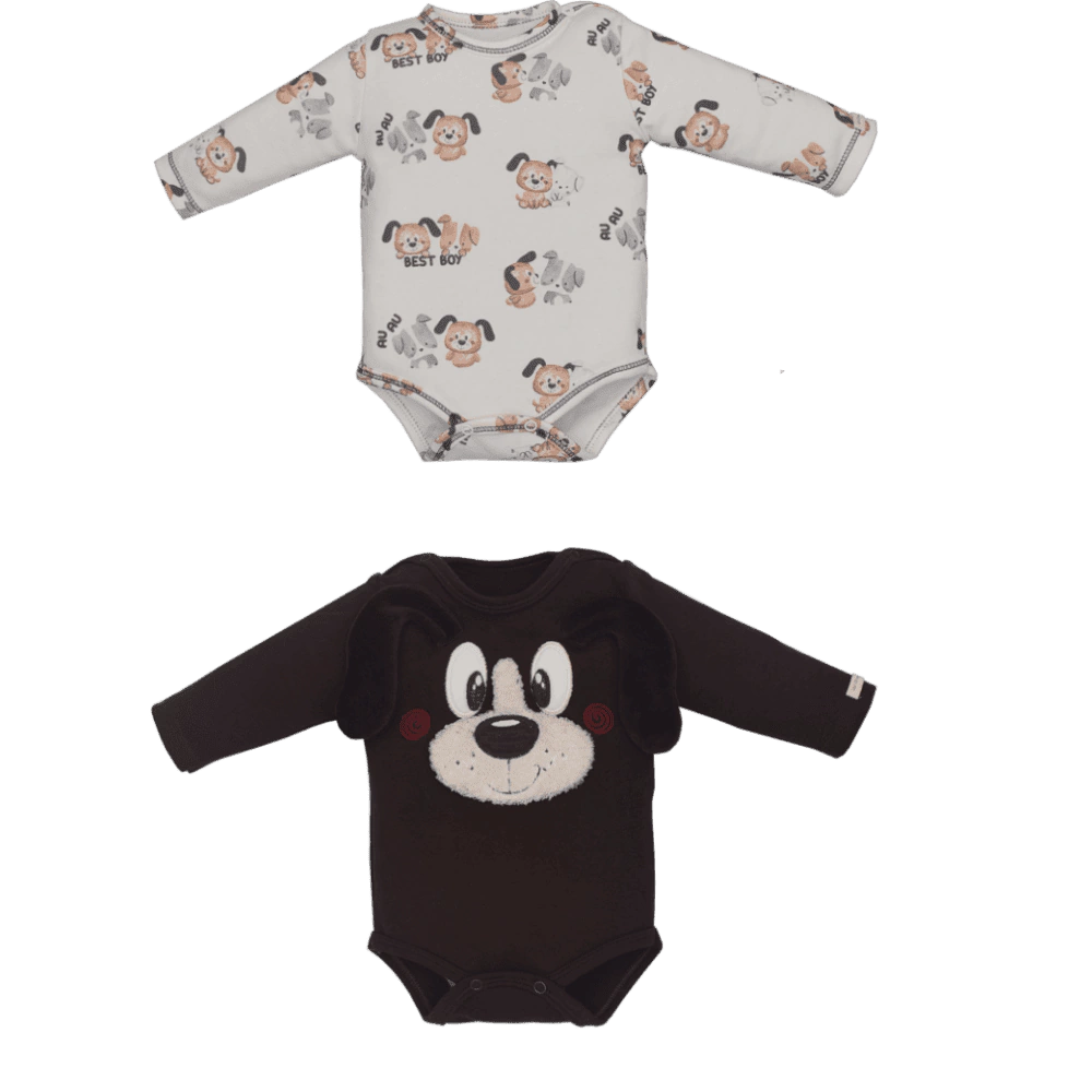 Este kit de body na cor marfim oferece praticidade e conforto para o bebê. Composto por duas peças, cada body é confeccionado em tecido suave e confortável, perfeito para o uso diário. O fechamento com botões de pressão facilita as trocas, proporcionando mais comodidade.