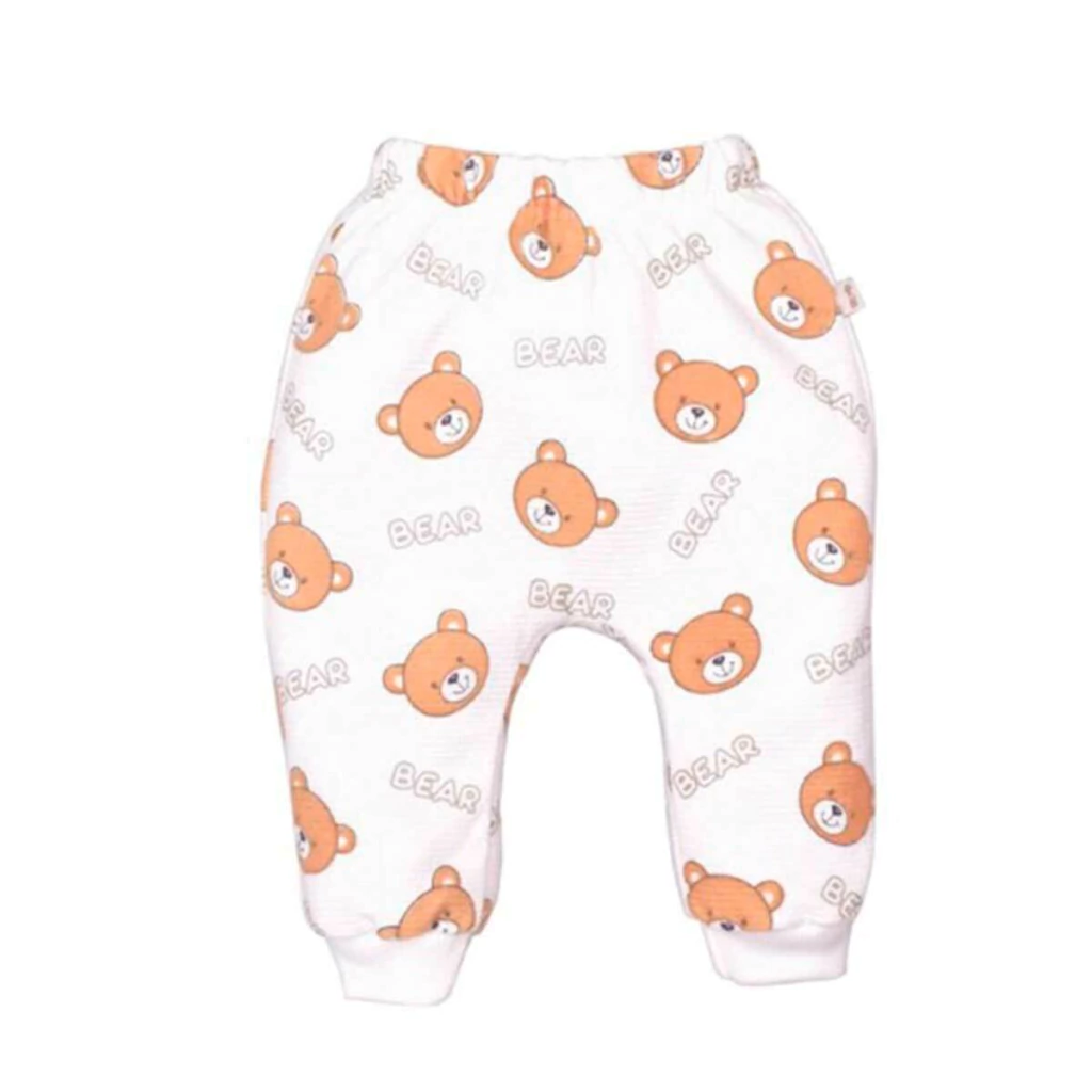 Contém: 2 calças (1 lisa marfim e 1 estampada com ursinhos e escrito "Bear")