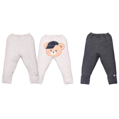 O Kit de Bebê 2 Peças Culote Marfim Enzo é perfeito para compor looks confortáveis e estilosos no dia a dia dos pequenos. Composto por dois culotes com pé reversível e elástico leve na cintura, o kit une praticidade e charme. Um modelo em suedine mescla com bordado fofo de ursinho no bumbum e outro em malha denim azul marinho com costuras decorativas que simulam calça jeans.