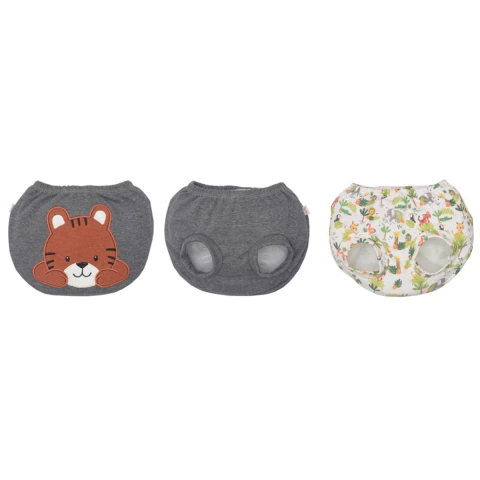 O Kit de Bebê Tapa Fralda 2 Peças Verde Giovanni é perfeito para manter os pequenos protegidos e estilosos durante os primeiros meses. Com design confortável e elásticos suaves, as peças vestem facilmente por cima das fraldas. O kit inclui uma peça com estampa divertida de floresta e animais selvagens e outra com aplique bordado de tigre, garantindo um toque extra de fofura ao visual do bebê.