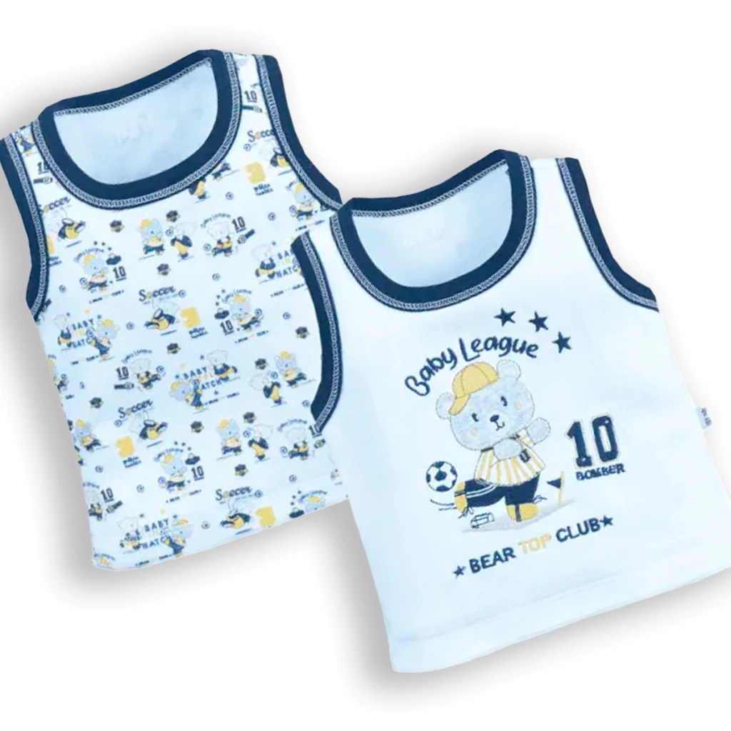 Escolha o Kit 2 Regatas Azul Claro com Ursinhos para praticidade e muito estilo no guarda-roupa do seu bebê.