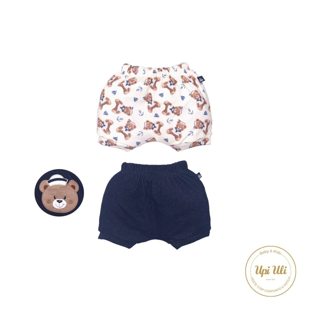 Este charmoso kit de shorts 2 peças para bebê menino é perfeito para os dias quentes! O conjunto inclui um short jeans clássico e versátil, ideal para diversas combinações, e um short marfim em algodão, com uma adorável estampa de ursinhos marinheiros, trazendo um toque fofo e divertido. Feitos com tecidos leves e confortáveis, garantem liberdade de movimento para o seu pequeno aproveitar o dia com muito conforto e estilo.