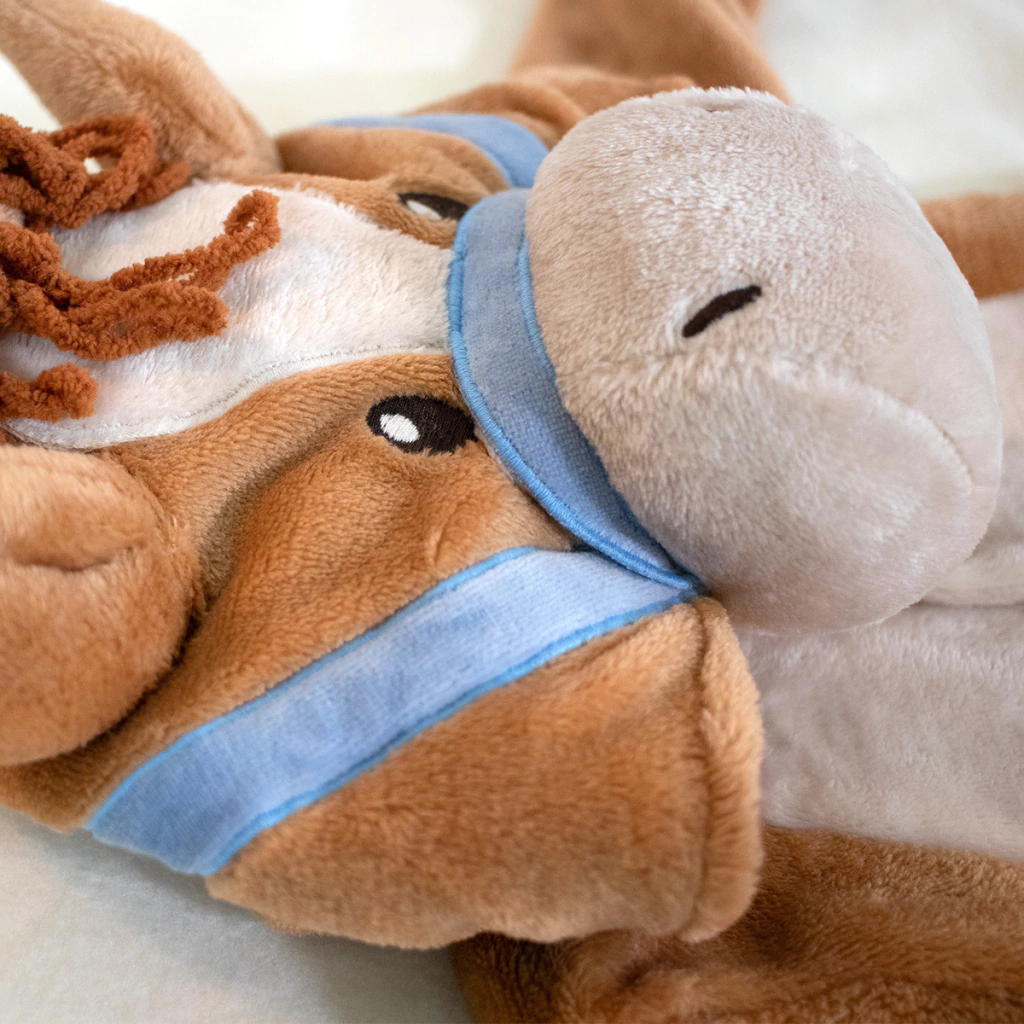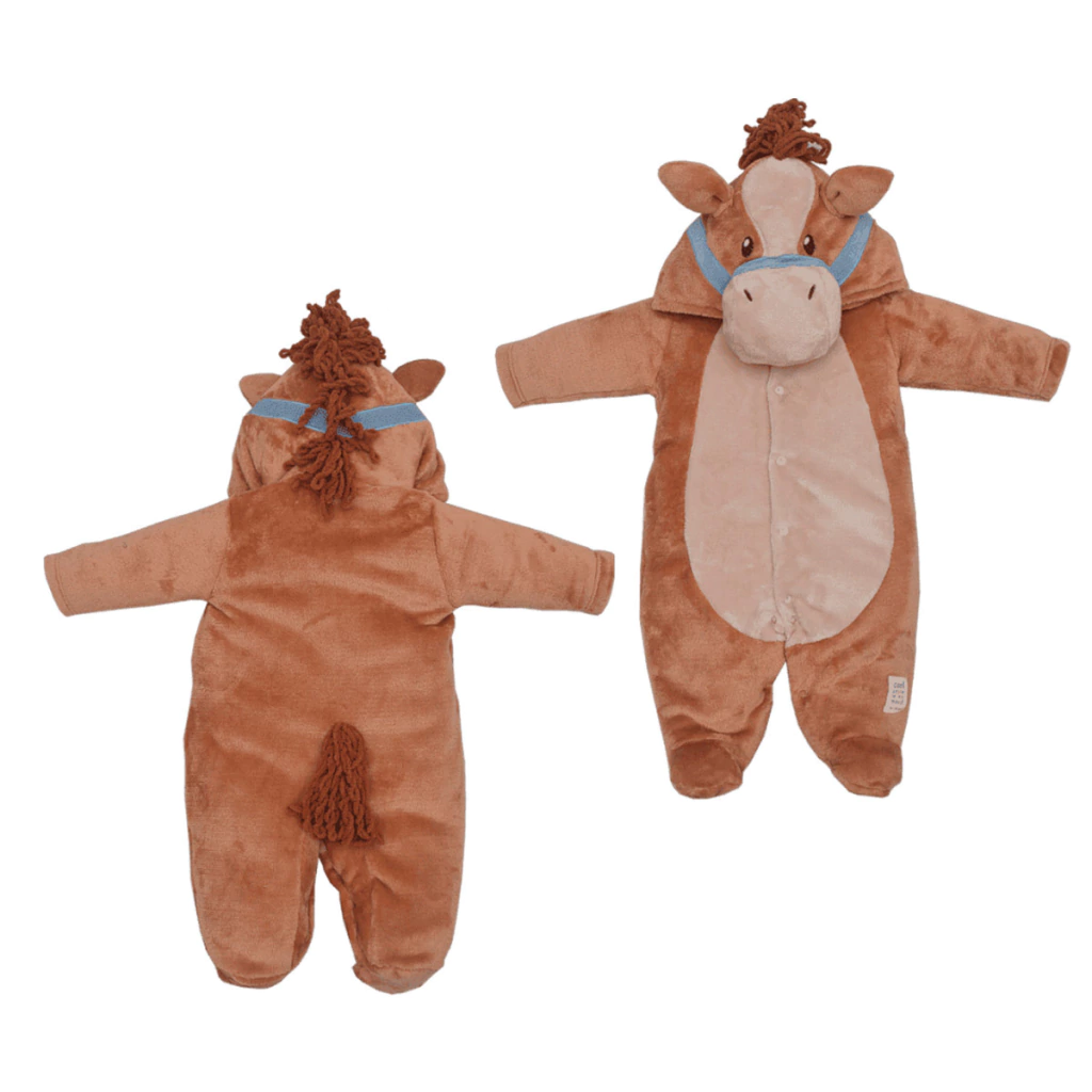 Este macacão de pelúcia é a combinação perfeita de conforto e diversão, trazendo um toque lúdico para os momentos especiais. Com capuz bordado em 3D de cavalo, ele proporciona aconchego e estilo para os pequenos.