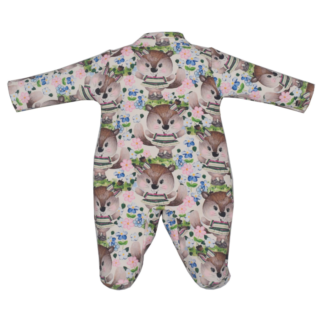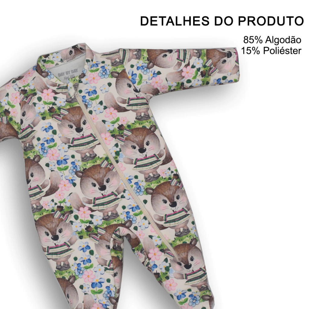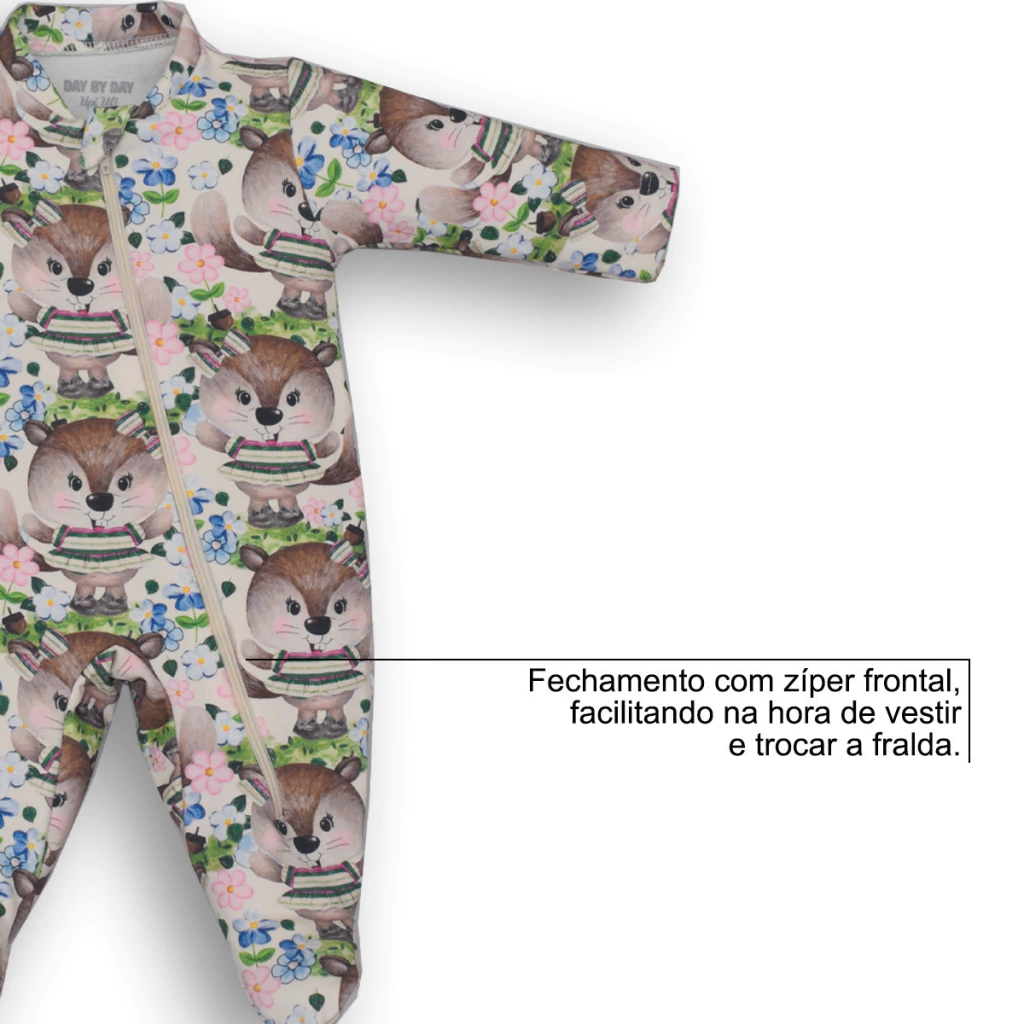 Deixe sua bebê ainda mais charmosa e confortável com este lindo macacão em molecotton! Com uma estampa exclusiva de esquilinhos fofos, ele traz aconchego e praticidade para o dia a dia, sendo ideal para os dias mais fresquinhos.