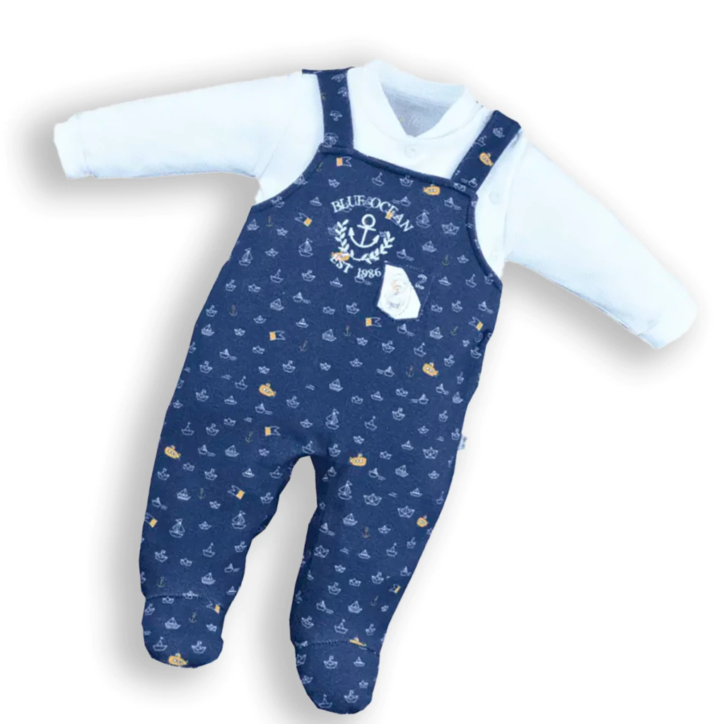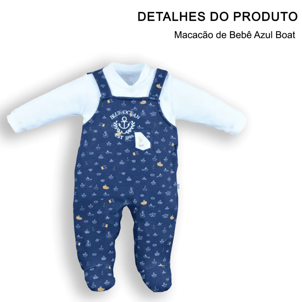 Este macacão com suspensório azul marinho é a escolha perfeita para o seu pequeno! Com uma estampa divertida de barquinhos, ele traz um toque de charme e descontração ao look do bebê. As mangas brancas e lisas equilibram perfeitamente o visual, tornando a peça versátil e confortável para o dia a dia. Ideal para passeios ou momentos em família, é uma roupa prática e cheia de estilo.