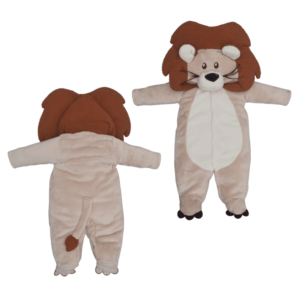 Este macacão de pelúcia é a escolha ideal para deixar os pequenos ainda mais fofos e aconchegantes. Com capuz que imita um leãozinho, com detalhes de juba e focinho, ele é perfeito para garantir conforto e diversão em todas as ocasiões.