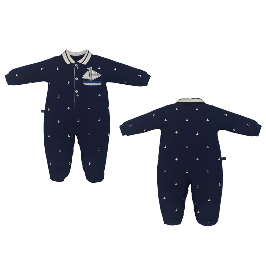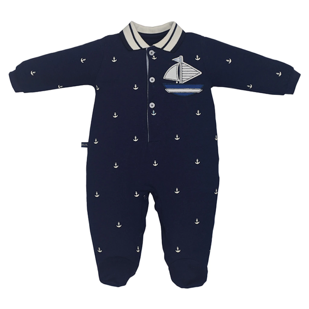 O Macacão Bebê Piqué Premium Azul Marinho Barco Alto Relevo é perfeito para compor looks elegantes e confortáveis, com um toque especial que transforma o guarda-roupa do seu pequeno!