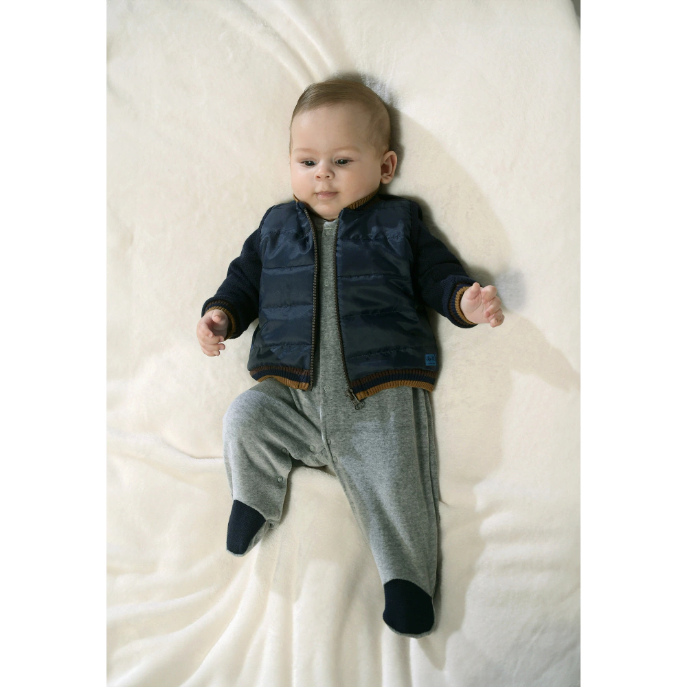 Aqueça o guarda-roupa do seu pequeno com o Macacão Tomás, uma peça sofisticada e cheia de conforto! Composto por um macacão em plush cinza com mangas e peito do pé em tricô, e um colete em poliéster, este conjunto é ideal para os dias mais frios, garantindo aquecimento e um visual elegante para o seu bebê.